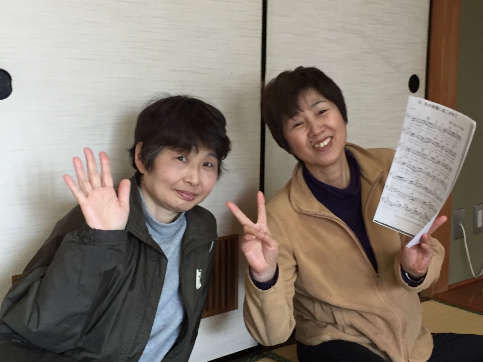 礼拝準備祈祷会の後、賛美の練習中のRejoice お二人。バッチリのようです。