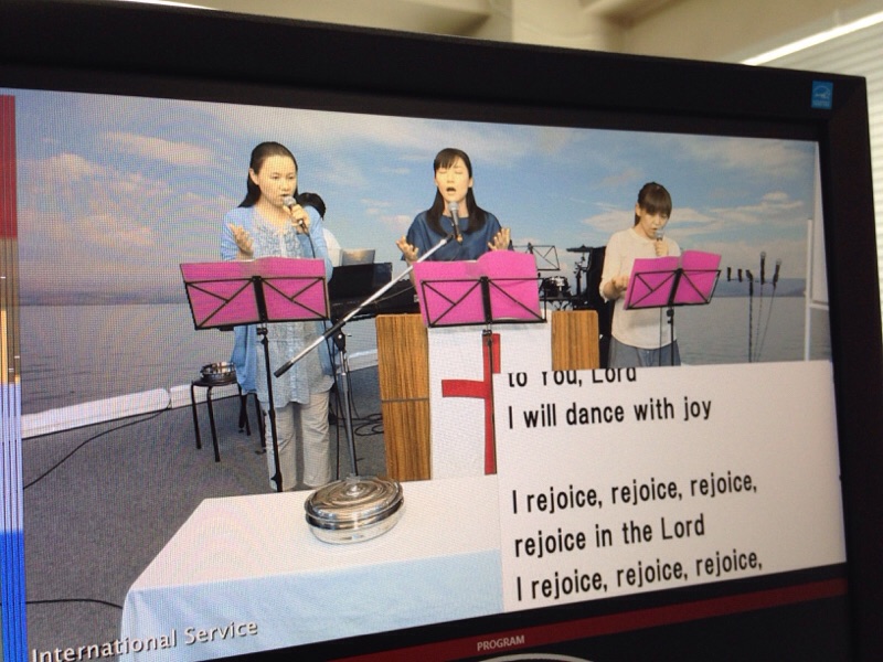 賛美リーダーしおこさんでインターナショナル礼拝が始まっています!
