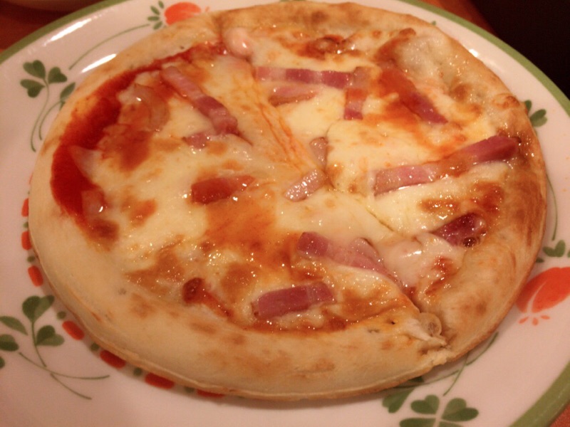 ひかりちゃんのサラダを多めにつまみ食いしたら、「食べすぎないで!」と叱られたので、お詫びにピザをとすすめたら、「太るからいらない」ときっぱり断られました。