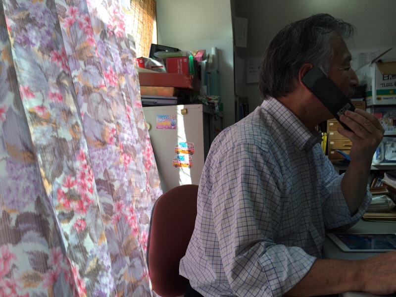 パソコン見ながら説明しています! カーテンを通しての優しい風が… 心地よいです!作業がはかどります…?! アマガイ