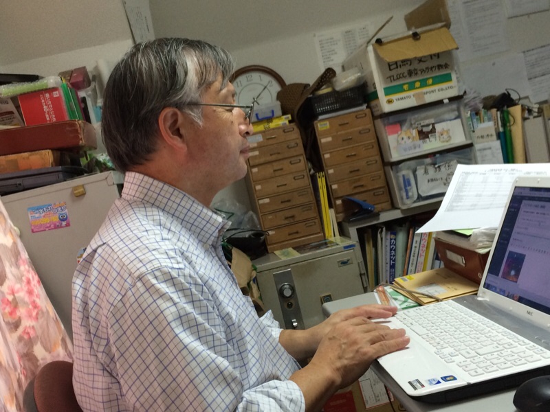 銀行から戻り、パソコン作業を続けます! アマガイ