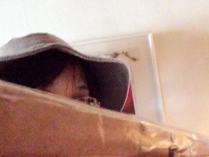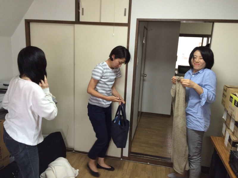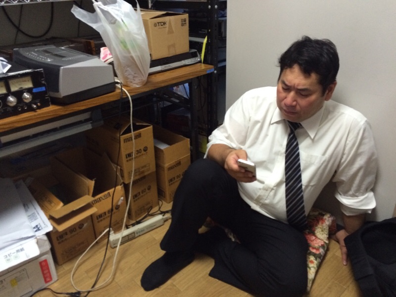 事務所に届け物がやってきました。 展示会での話を真境名さんとしています。