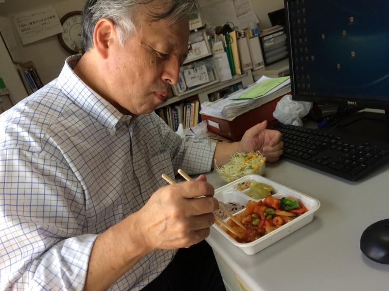 銀行から戻り、お昼ご飯を食べています! お腹空いているので… あっという間に食べてしまいました〜! アマガイ