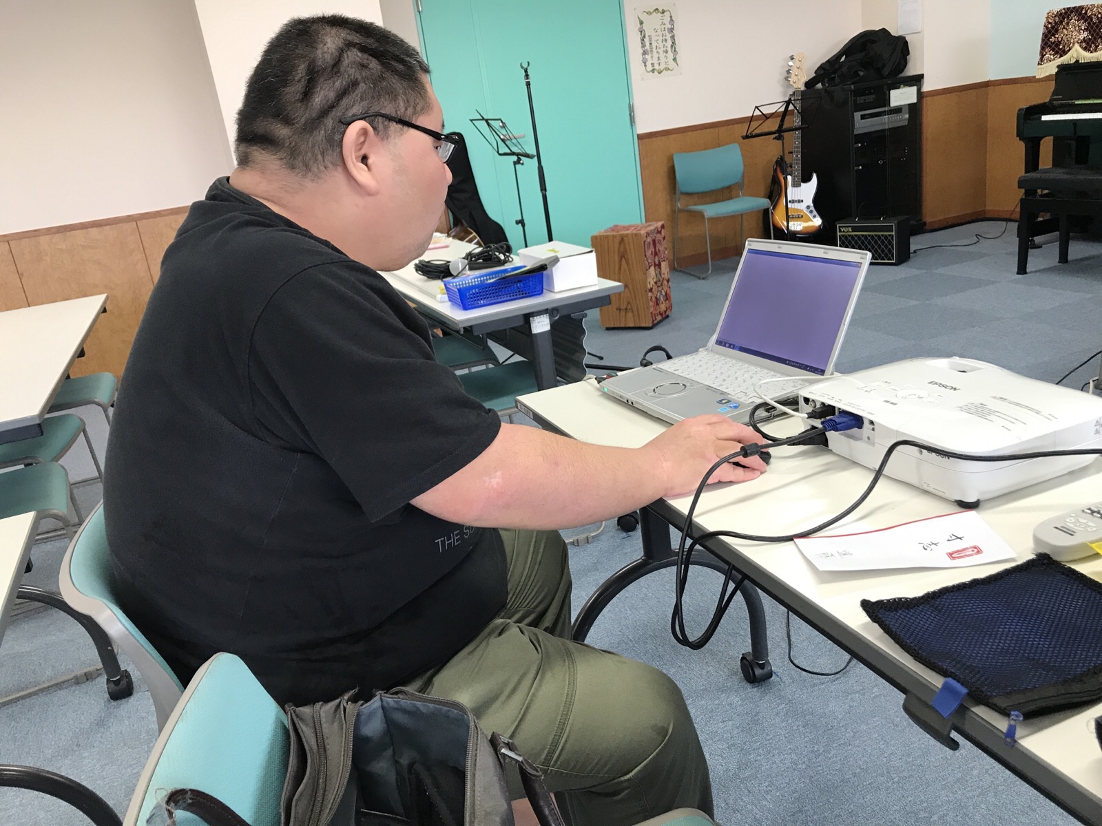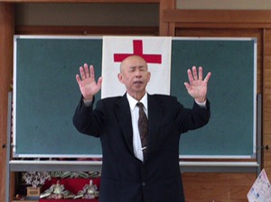 MAYチームで弾き語りで「天の窓を開けて」を賛美します。