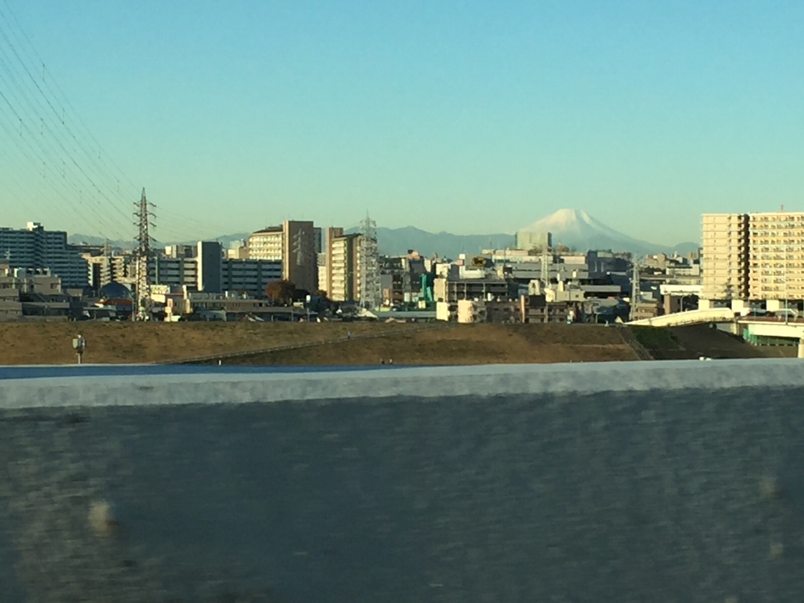 郡山桑野のデーサービスと病院リハビリ施設でコンサートです。荒川から富士山が見えてきました。 厚木