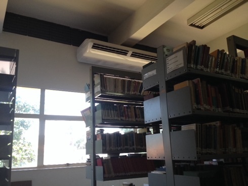 図書館に前はなかった冷房が。机や椅子も綺麗に。これなら私にとっては税金の使い道は有難い。