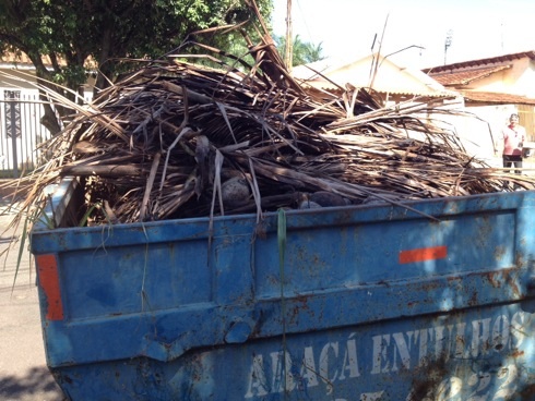 建築資材の瓦礫用処理業者にクレーン車で持っていってもらいます。