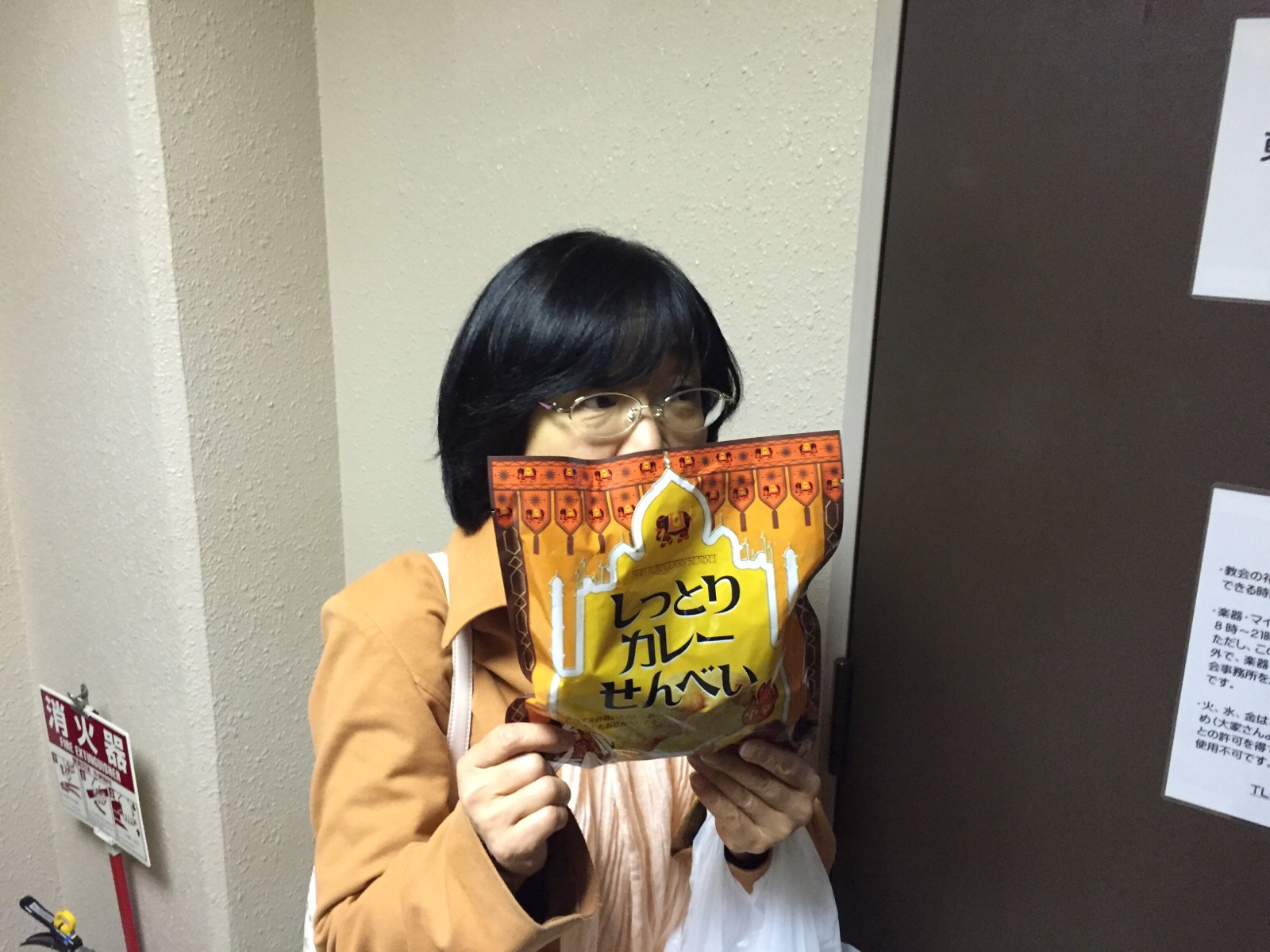 吉田さん、今日のおやつはカレーせんべい。