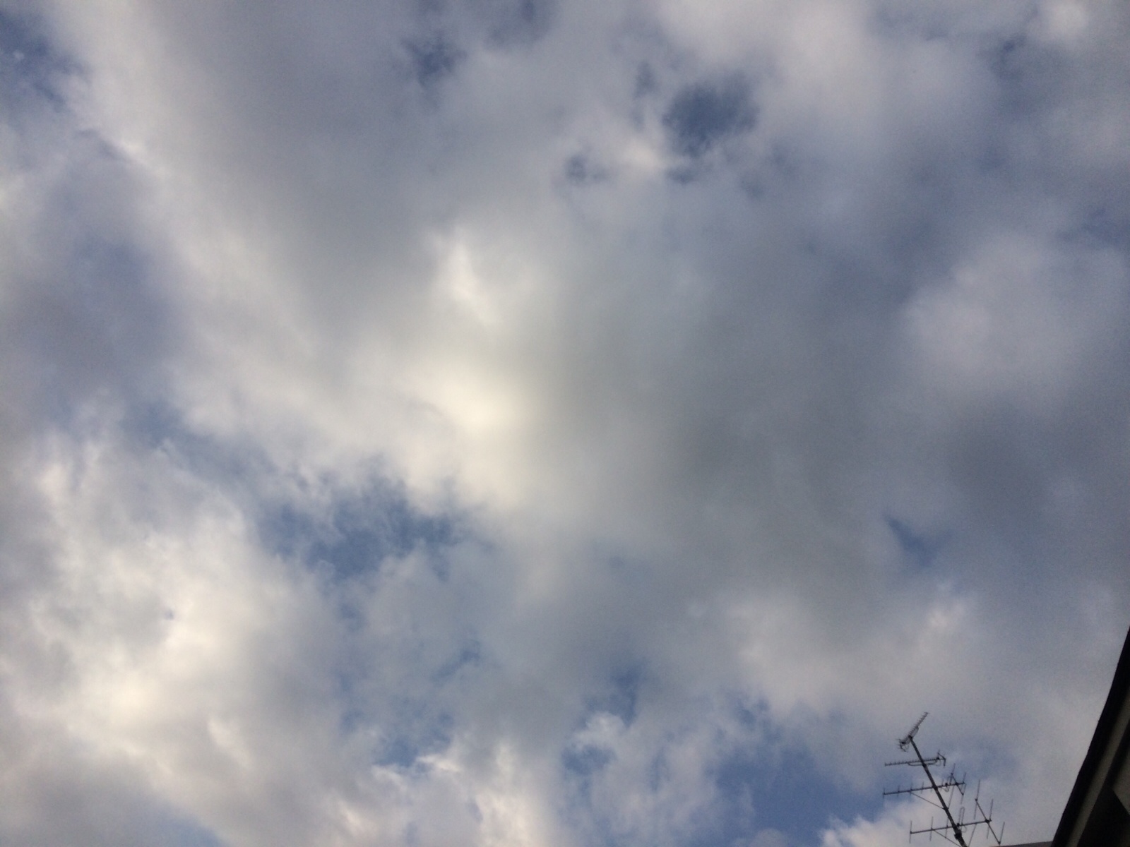 今日は、ちょっと黒っぽい雲もあるけど、天気は天気予報通り、曇りかな? ミカエル