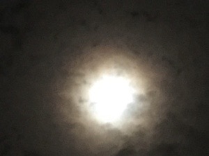 何故か振り替えって空をみたら、月の周りが、虹色でした。昨日の夜です。 おおの