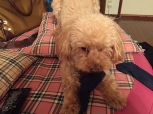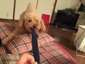 昨日は、妹宅で、夕食作りました。 犬の、やることは、皆同じ。 次男の靴下です。協力しでしまいました。 おおの