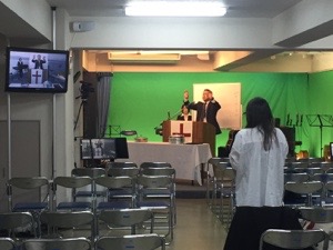 第一礼拝が始まりました! 賛美リーダーはジョセフ前田さんです。
