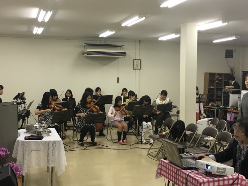 カリスマ礼拝が始まりました!オーケストラと共に、賛美を捧げています♫