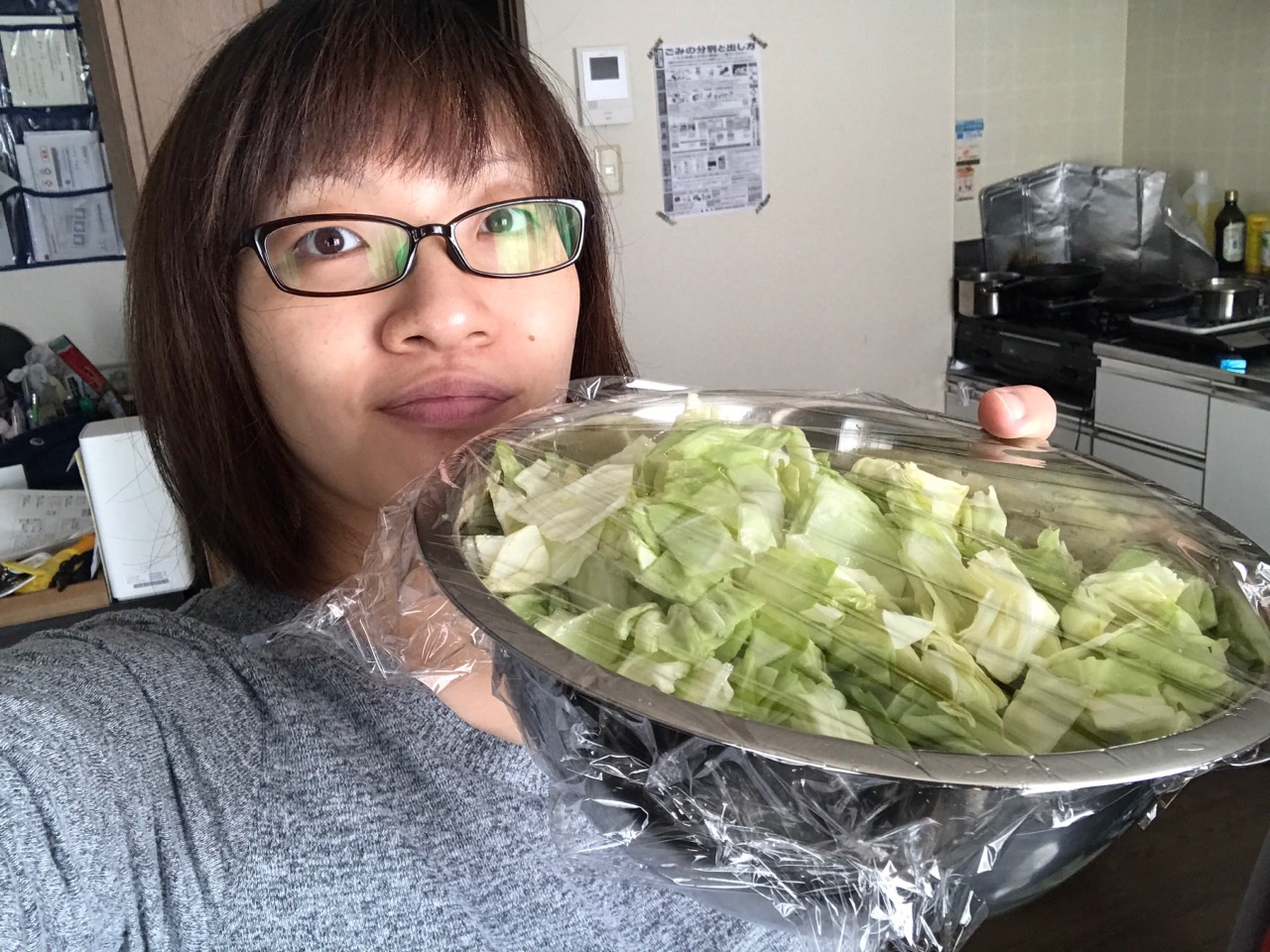 キャベツ丸ごと一個をスープやサラダにすぐ調理出来るよう下準備しました。出来るうちに!目指せ時短^_^