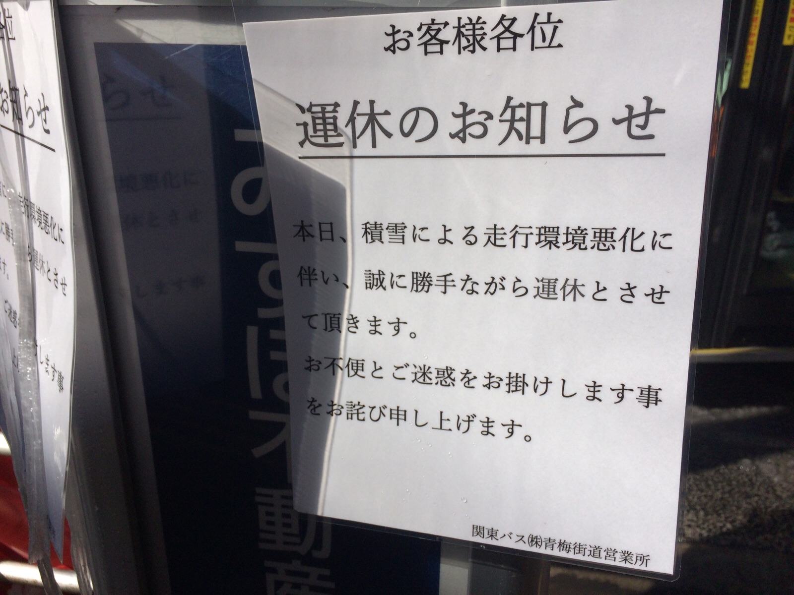 バスに乗って、職場行こうと思ったら、バス、お休みです。