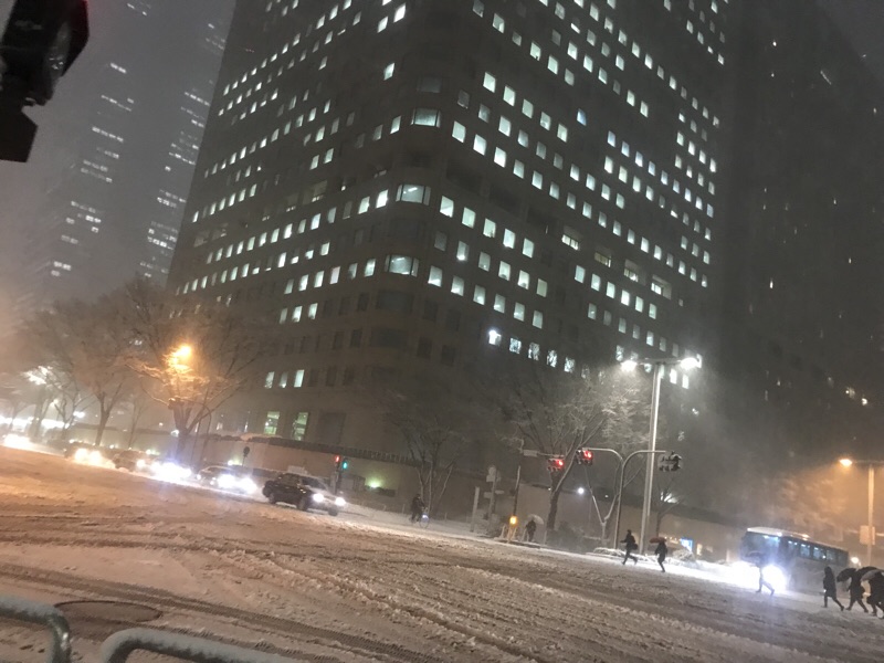銀座でも雪が降り始めました。写真には写りませんが、けっこう降っています。