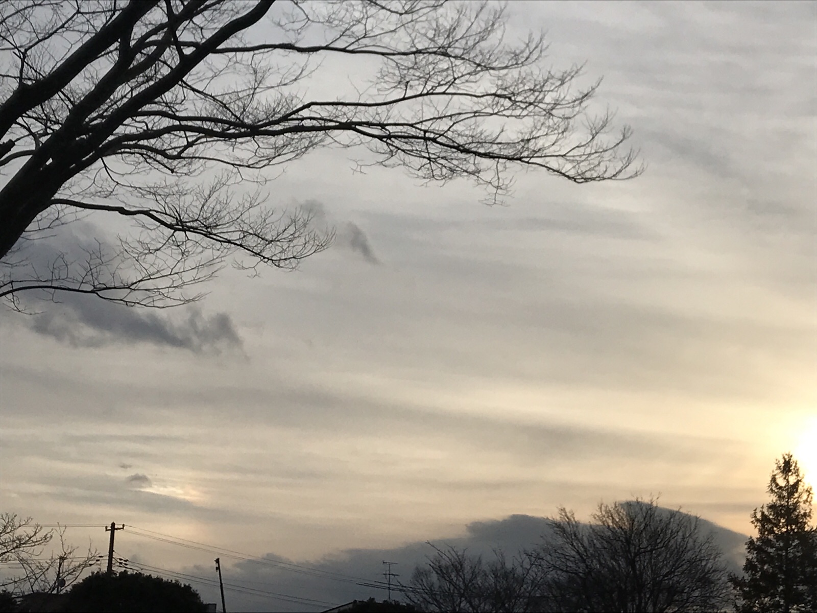太陽の左側に彩雲。夕方寒いけど、心はホカホカになりました。 東フィラデルフィヤ シオン