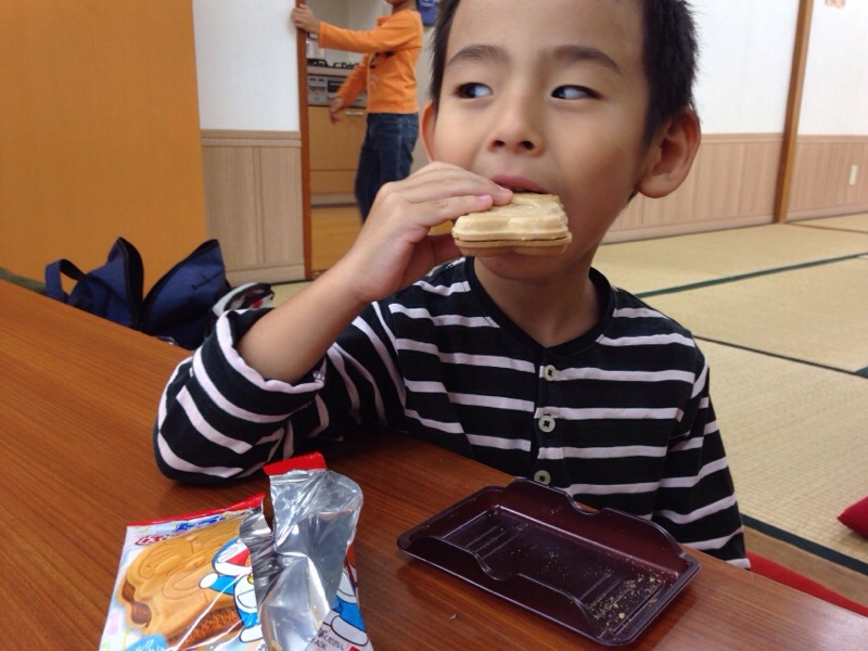 ヨッシー、ドラえもんのふわチョコモナカ美味しそうに食べてます(^^)