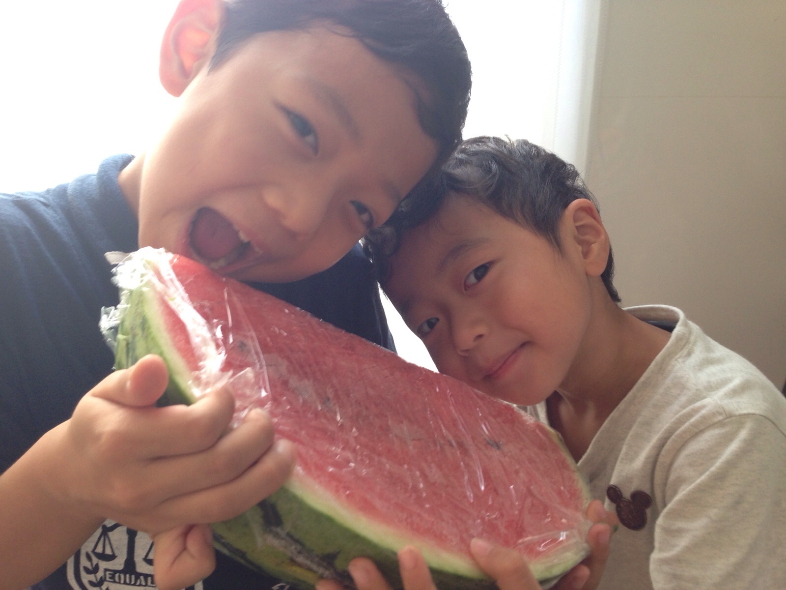 主人の実家から、大きなスイカいただきました♪ 子供たちが大喜びです! 感謝します。 Truth Akemi