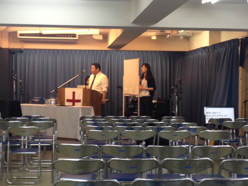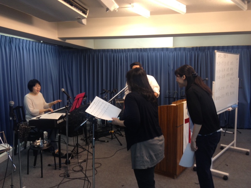 礼拝で歌う賛美の練習をしています。
