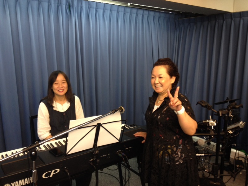 フリーダムの清水さんとエルサレムの真理子さん。 新曲の練習中です。