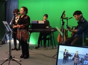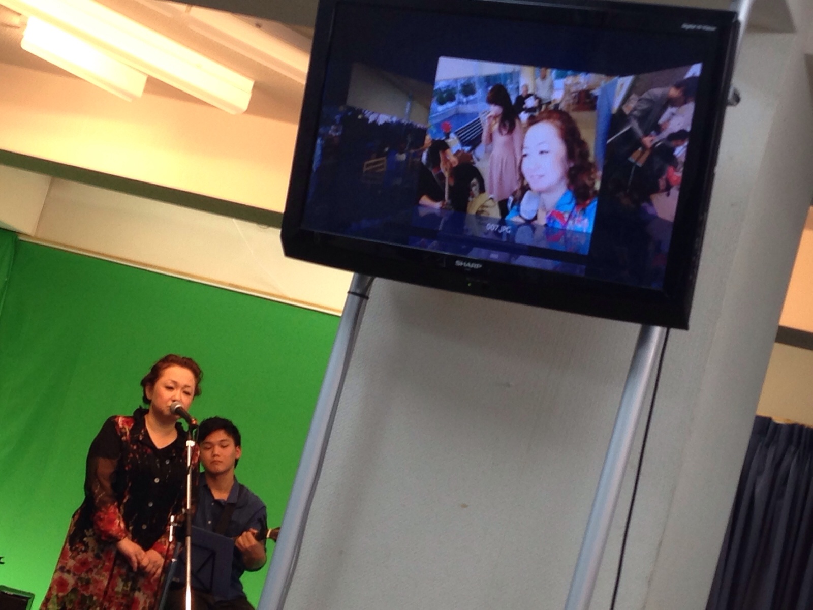 招かれたところで、大きな愛をみんなで歌った写真を説明されています。