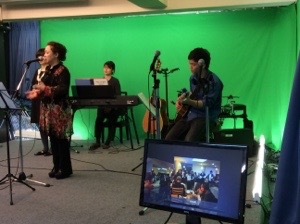 各スタッフが機材を扱って頑張っています。みんな明日の予選会で賛美します!