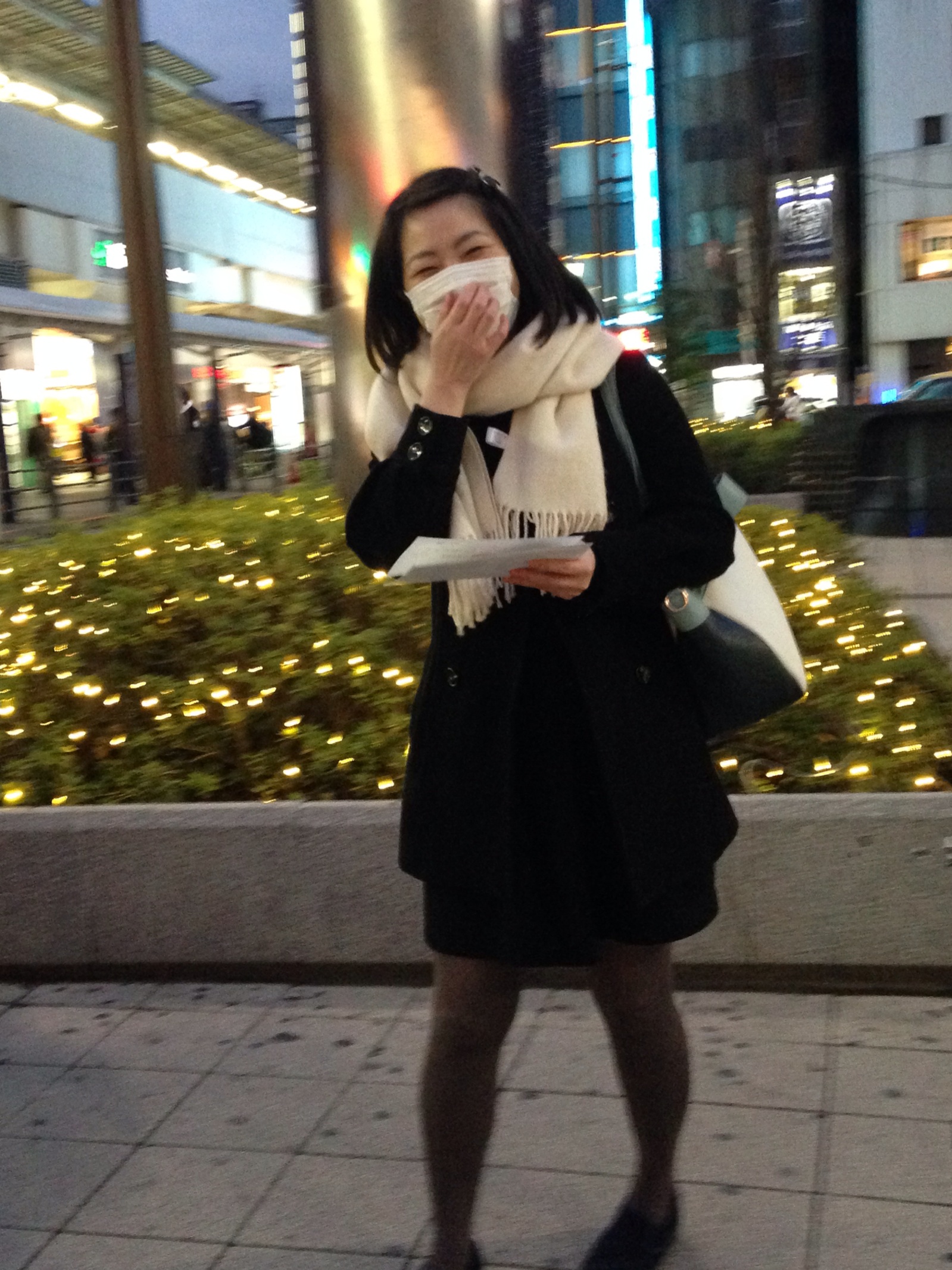私マスクしてて怪しい?とL’abelledのユミちゃん。大丈夫だよー