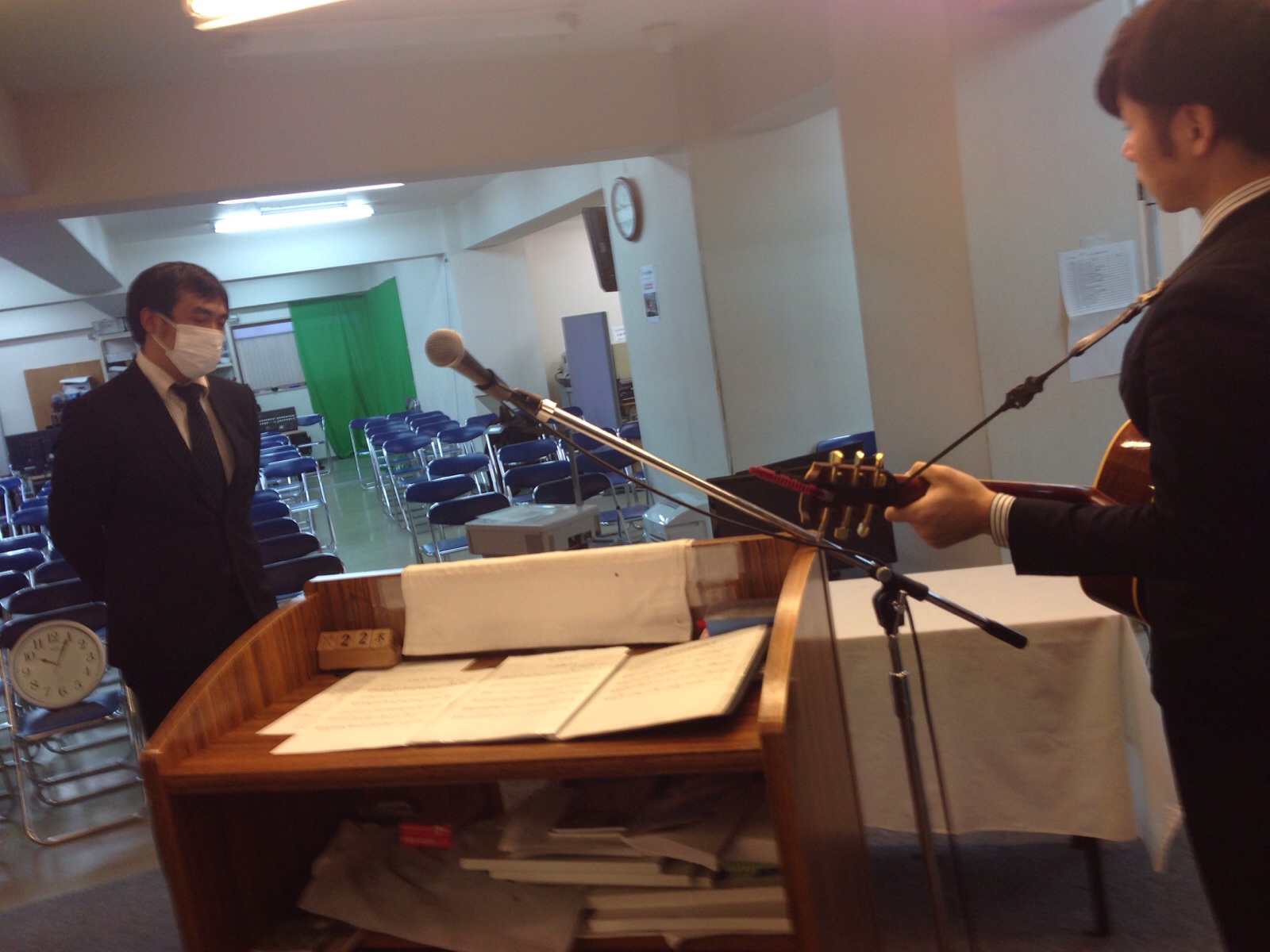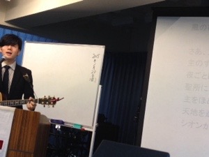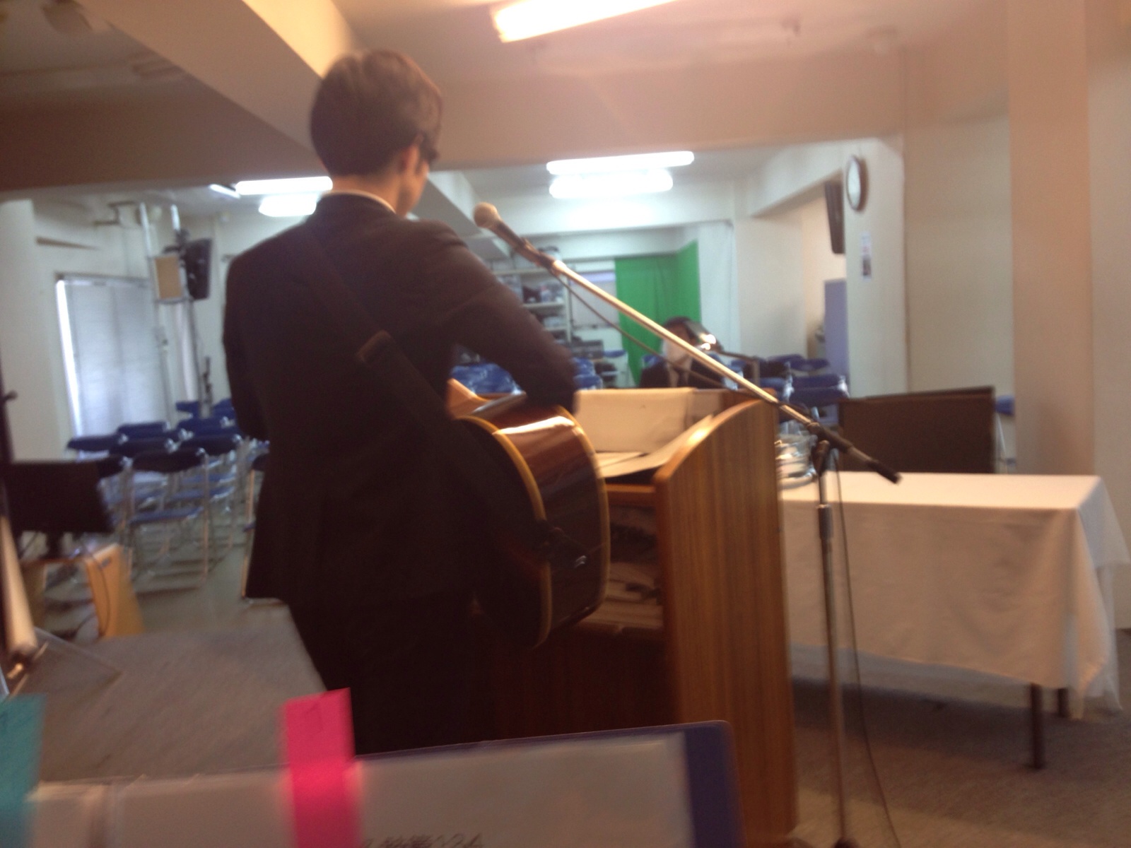 金曜礼拝スタート ダビデくん、今日は司会兼賛美リーダーです。