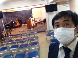 会堂に到着! 今日は真境名さんに代わってメッセージをやる事になりました。