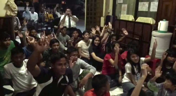 今日は駅に着いたら、皆がカンボジアチームの映像の鑑賞会してました。 (^_^) -司会チーム&ヒソプ ミカエル-