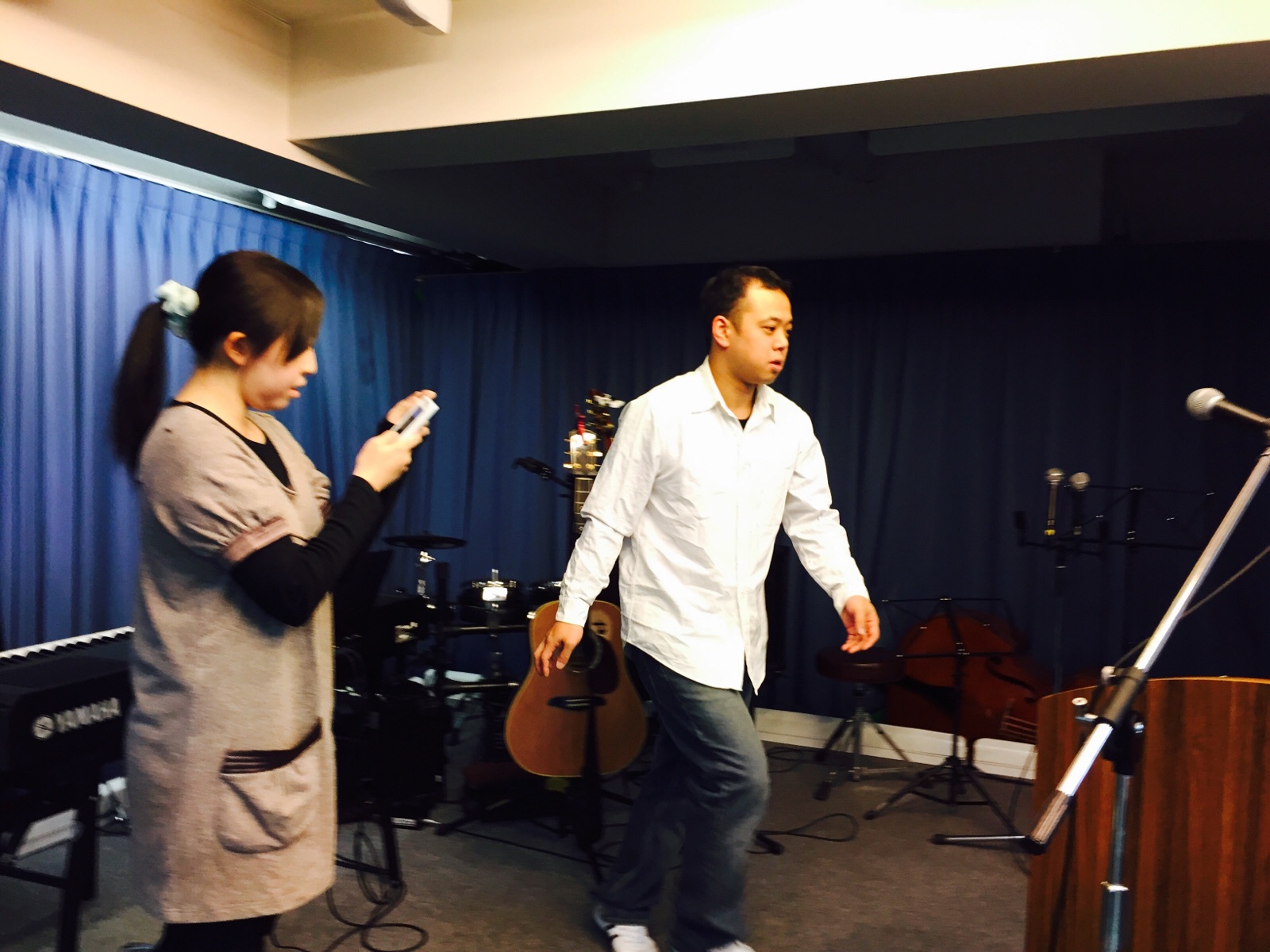 会堂では、これから社会人会チームの練習です。 準備しているエステル清水さん。 -司会チーム&ヒソプ ミカエル-