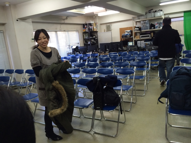 会堂に到着! ウラノスの皆さん、マイクを使って練習しています。