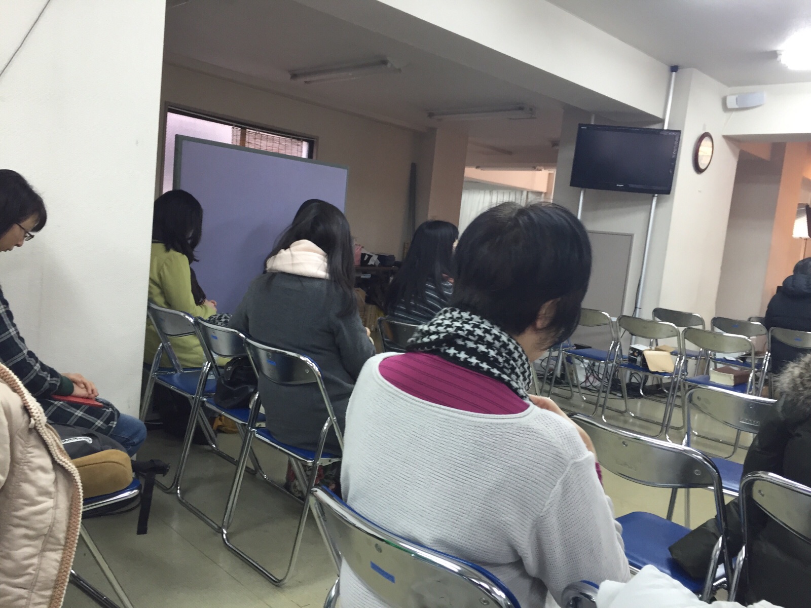 賛美予選に参加するチームの方々が神学校の授業を受けに集まってきました。
