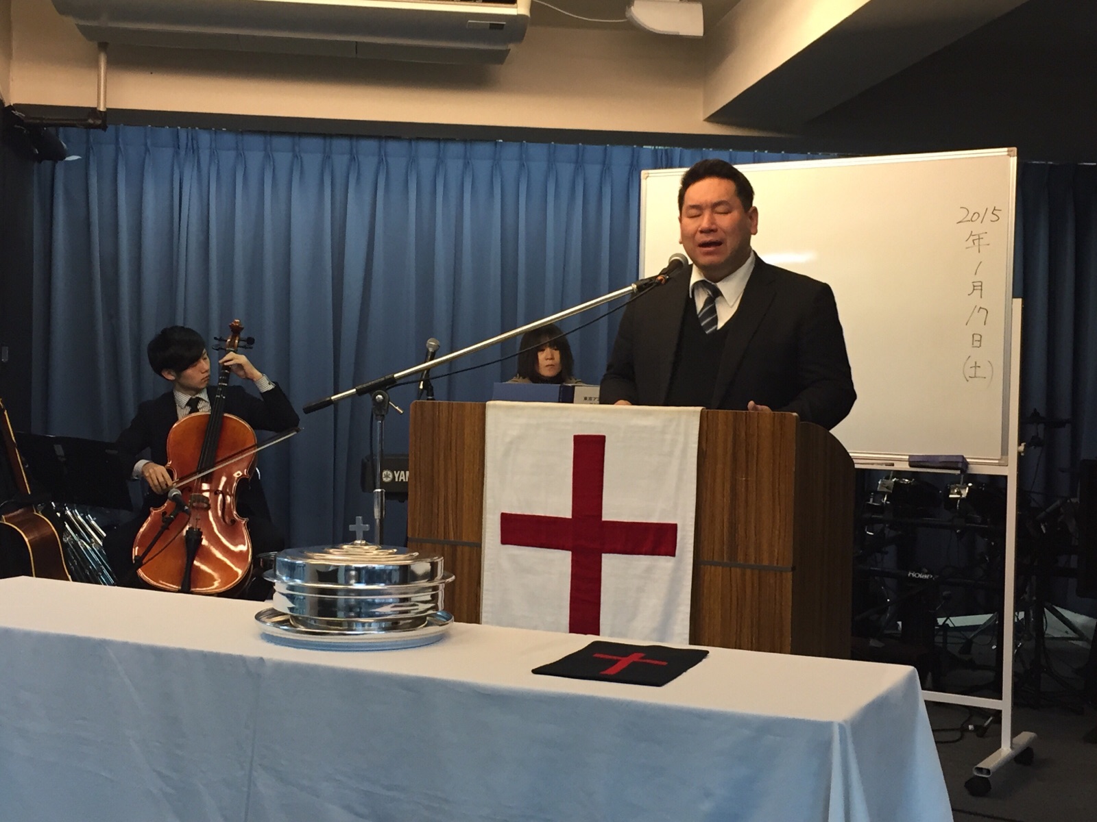 キブツ真境名さん、賛美リード。 チェロ元くんもオーケストラで参加。