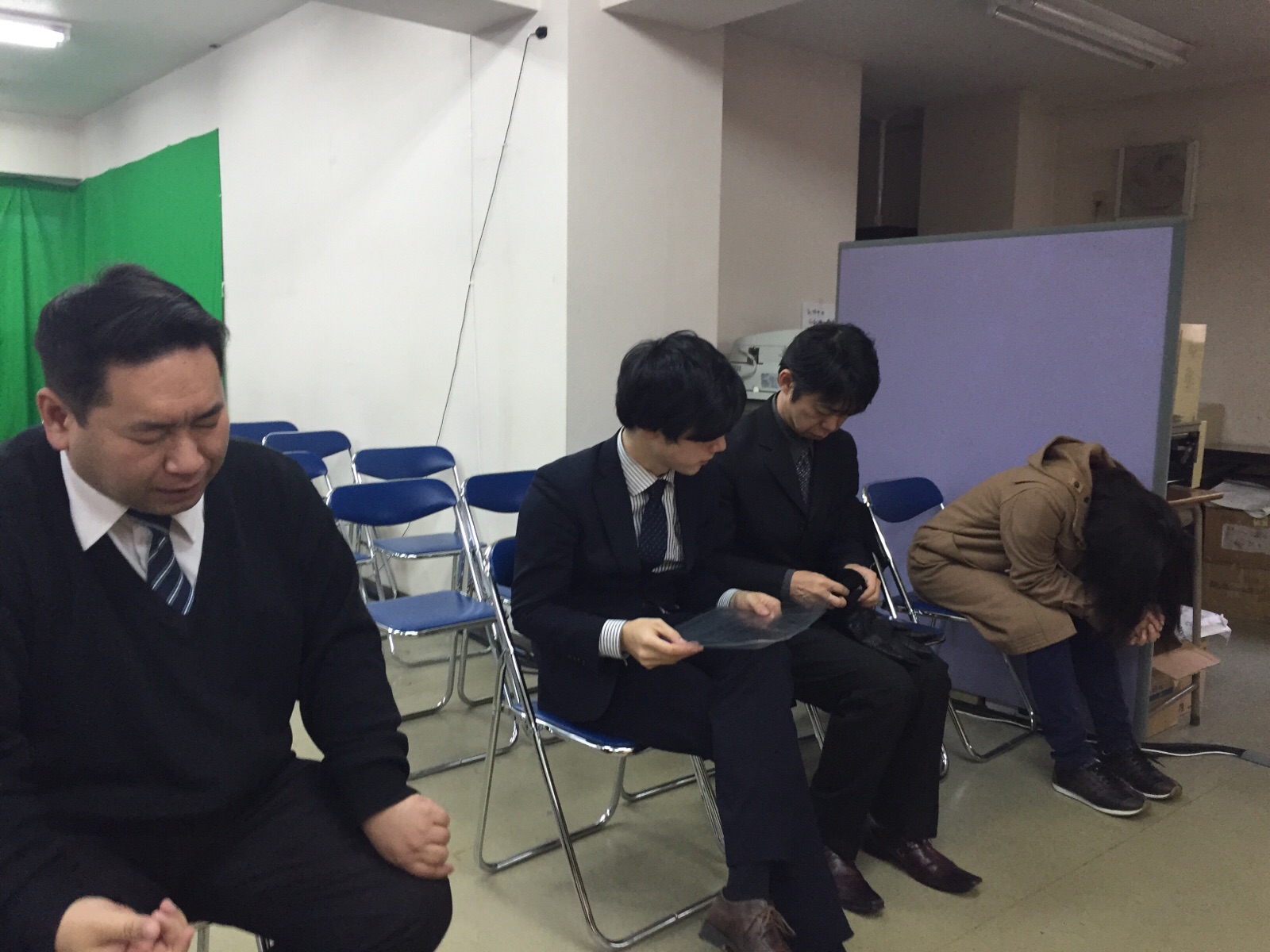 土曜礼拝前のお祈り。賛美チームよりどり。