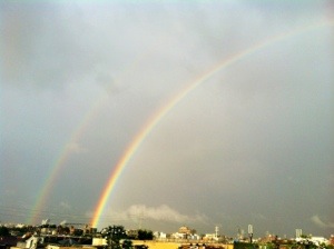 虹を見に行ったら土砂降りで