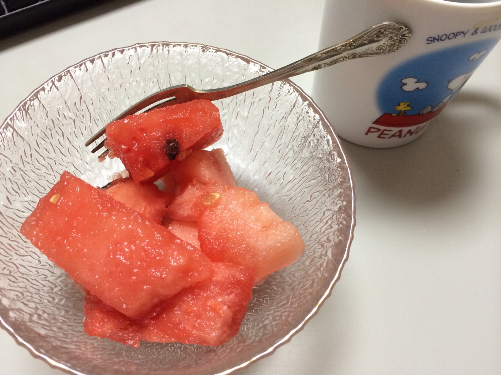食後のデザートは、昨日の食べ切れなかったスイカ。
