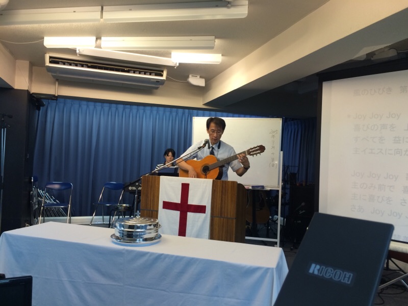 土曜日礼拝のメンバー、夏休みの方、お仕事の方が多く、今日は渡辺くんが賛美リードです!