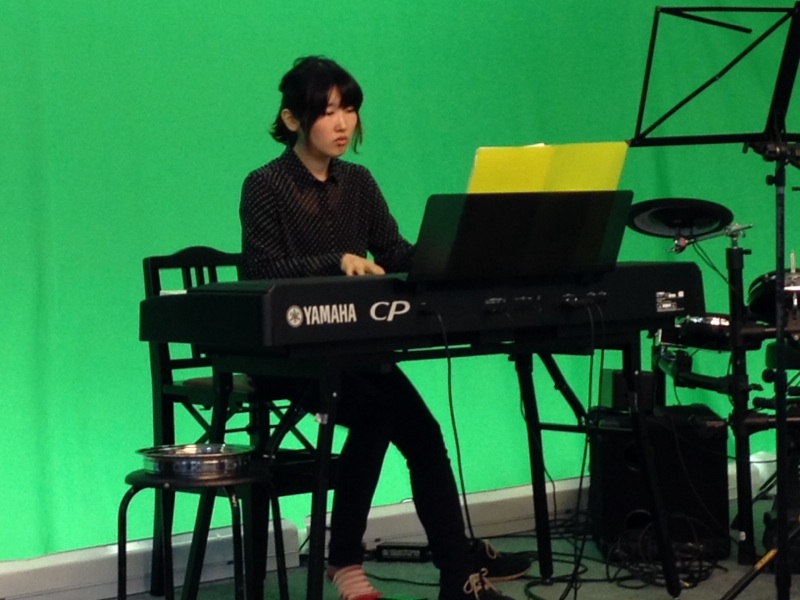ピアノ演奏する、まゆちゃん。