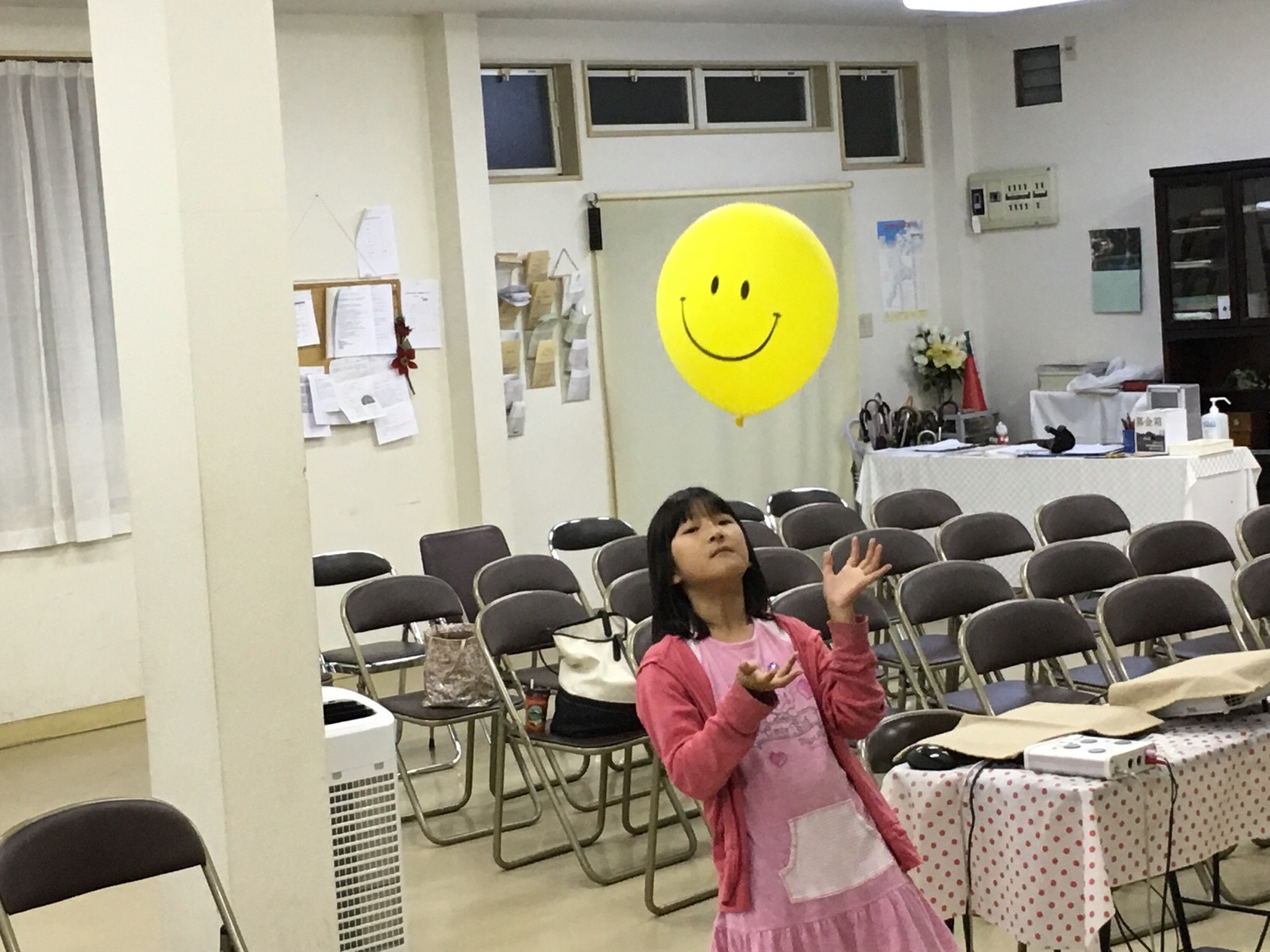 練習の間、ハナちゃんは、風船で遊んでくれてます。ニコちゃん、風船(^ ^) 四日市 E.M