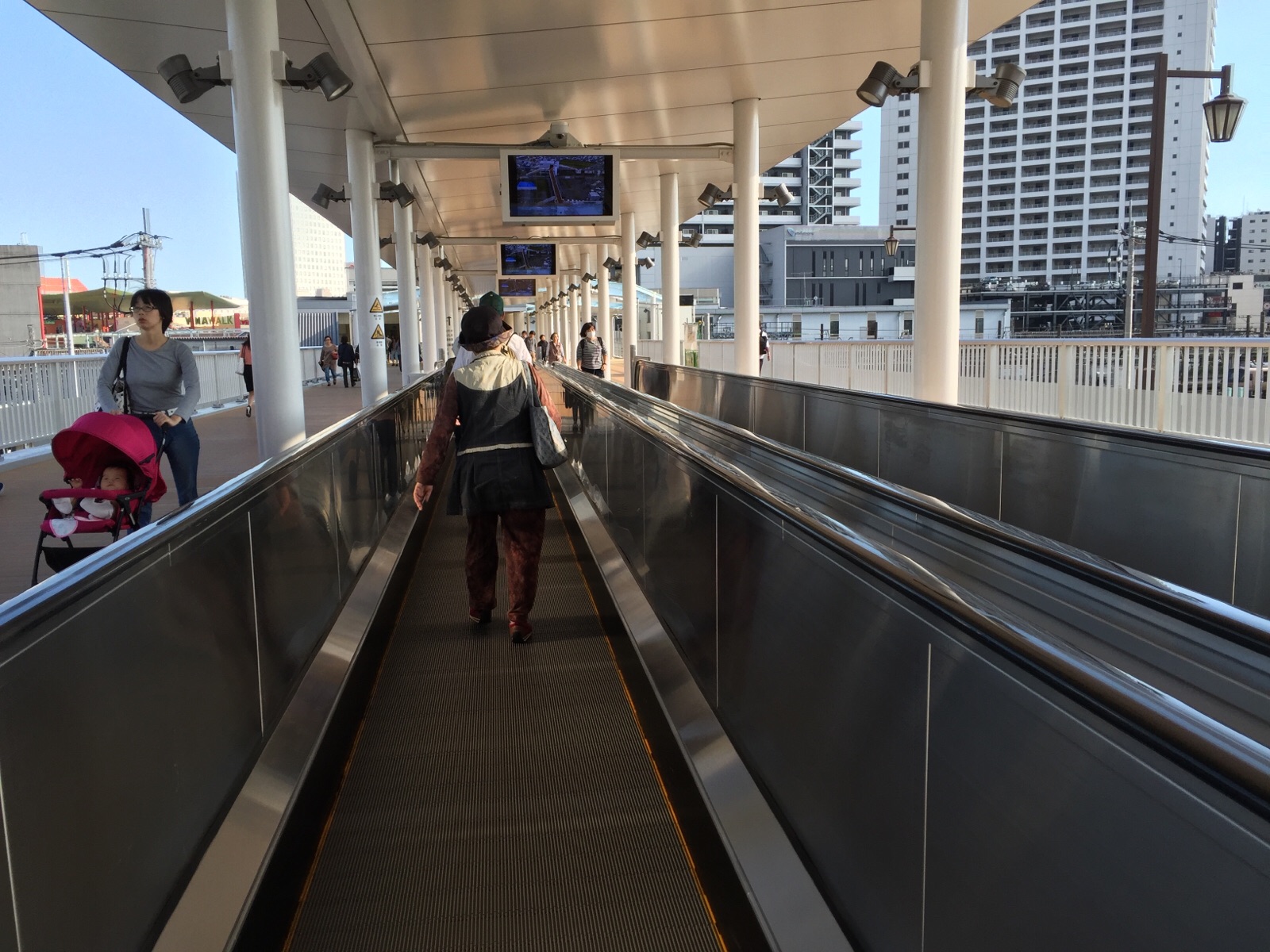 工事中の乗り換えの駅が、すっかり綺麗になりました。歩く歩道です。