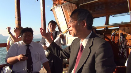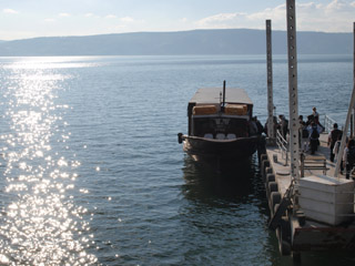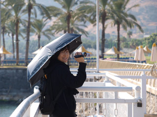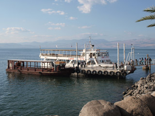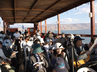 | そして午後はここから船に乗って、ガリラヤ湖の真ん中へ。そこで船上礼拝をささげました。白い方の船かなと思っていたら小さい方の船でした。かえって趣があって良かったです。