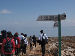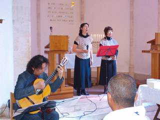 当日ガリラヤ湖畔で自転車レースがあり、道路は通行止めで、車が午前10時半まで動けない状態でしたが、なんとか礼拝には間に合いました。 |