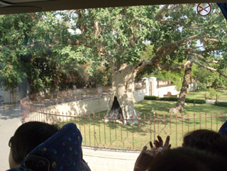 | この日はガリラヤ湖に向かっているのですが、途中パレスチナ自治区にあるエリコに行って食事をしました。イエス様が誘惑された山にロープウェイで上り、そこのレストランで食事をいただきました。エリコに入った直後にザアカイが登ったと言われているいちじくぐわの木を見ました。