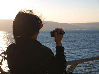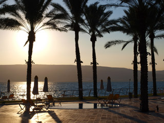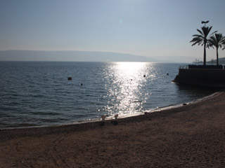 | 次の日の朝食後、Gai Beach Hotel の砂浜でガリラヤ湖を見ました。
