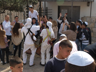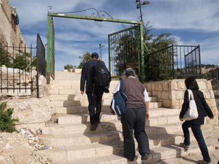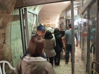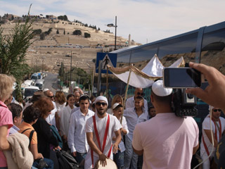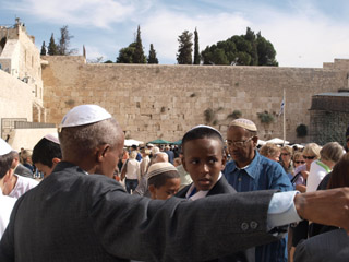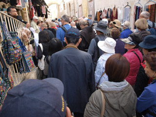 途中、ビアドロローサを通り、嘆きの壁の横を通りました。アラブ人地区からユダヤ人地区へ入るときはスキャナーで荷物の検査があります。 成人式のお祝いをあちこちでやっていました。ユダヤ人は13歳で成人式ですが、家族、親族とでしょうか、にぎやかに歌を歌ったり、踊ったりしていました。 |