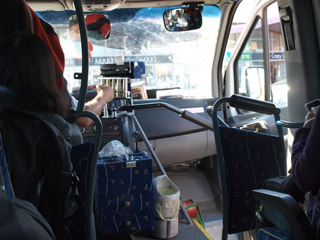 お客さんにとっては自動ドアですが、実はドライバーがドアと連動した手動レバーを動かしてドアを開閉していたのです。おもしろい構造でした。 |