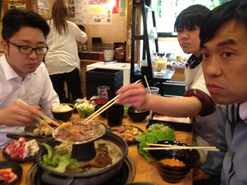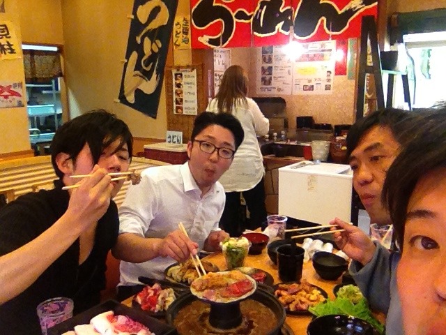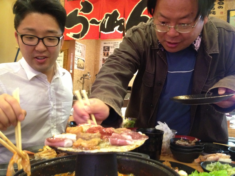 違うテーブルの松田牧師がこちらのテーブルのお肉をつまみ食いです!