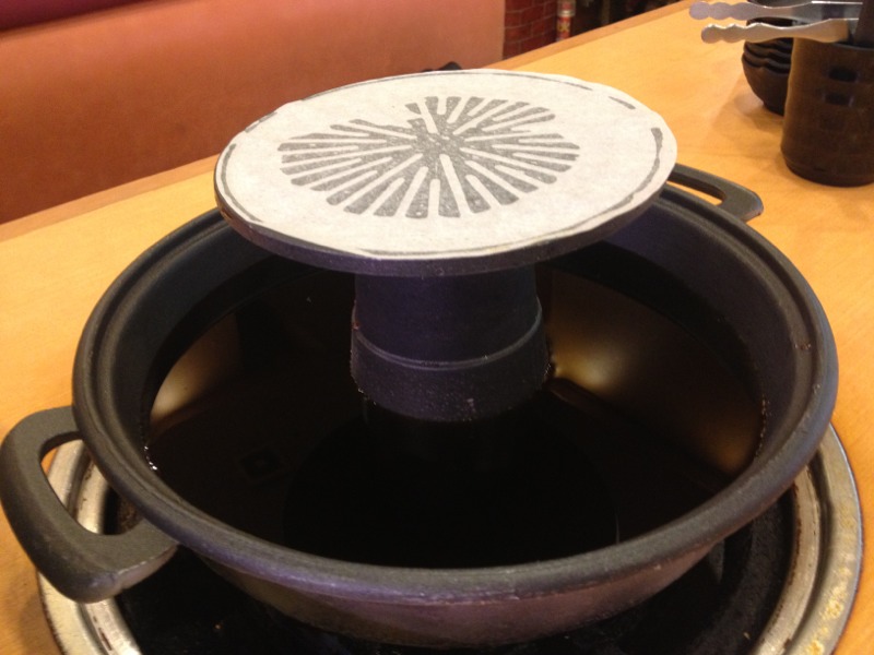 正解はしゃぶしゃぶと焼肉を同時にできる調理器具! 上が焼肉、下がしゃぶしゃぶ!